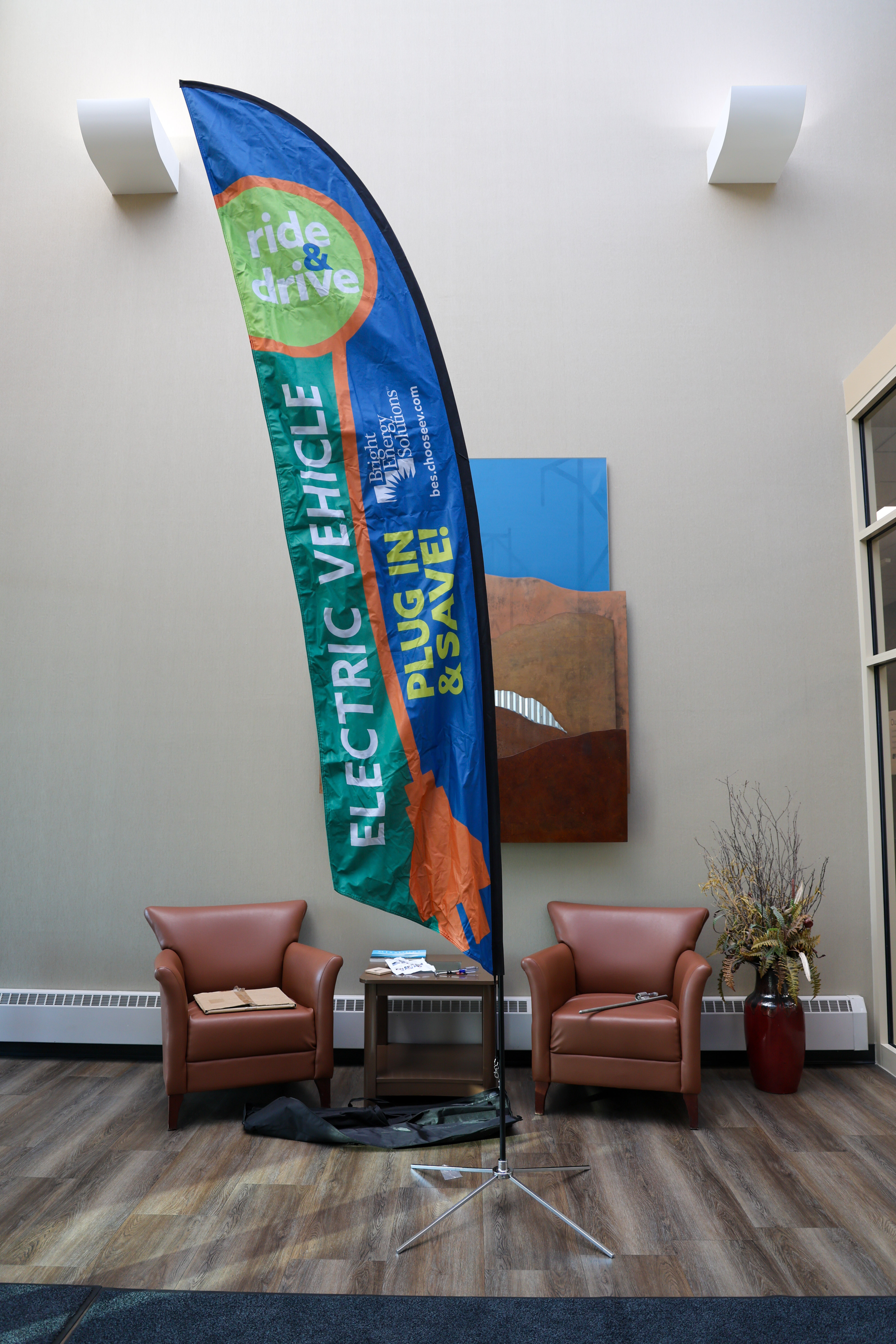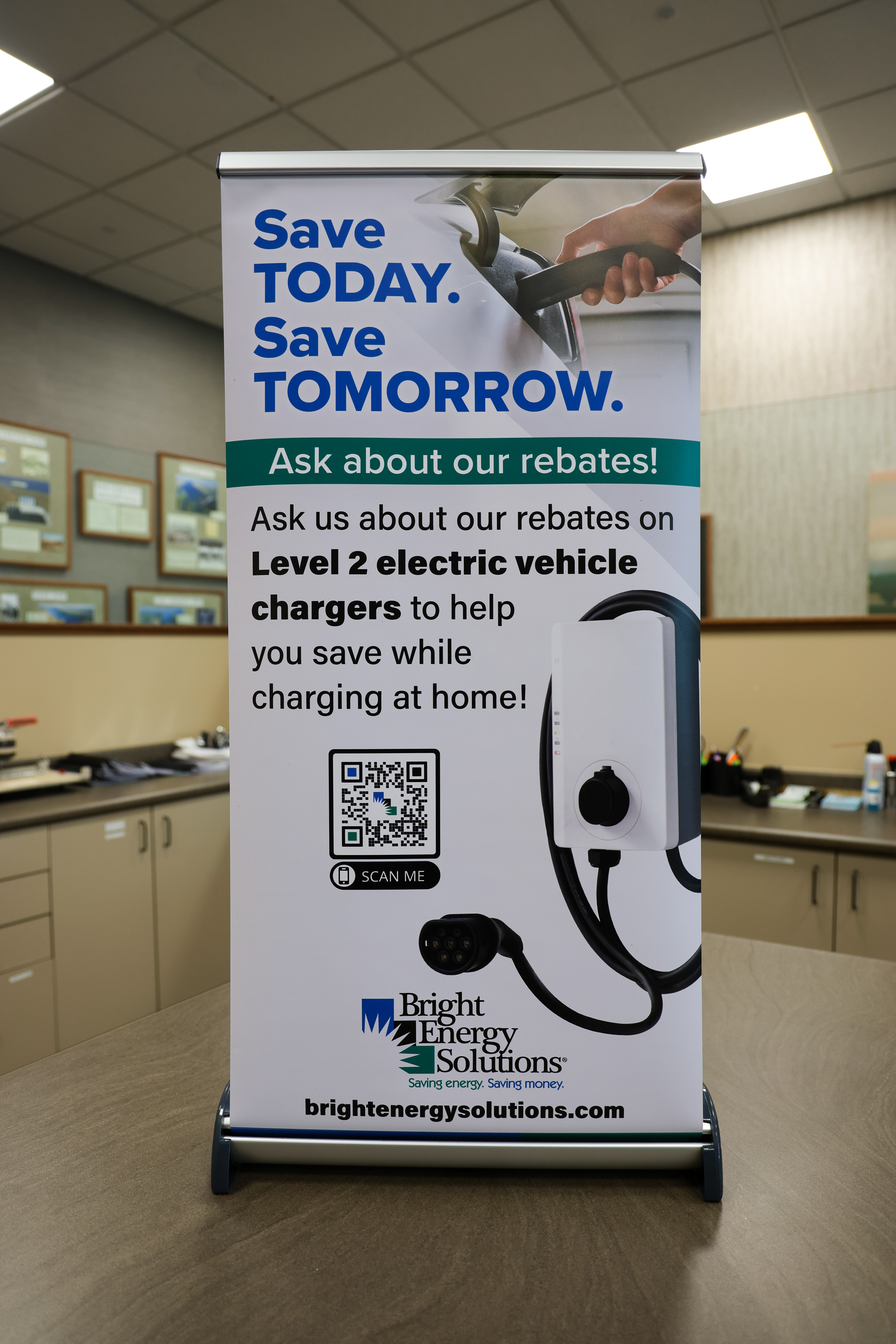 BES EV charger rebate tabletop pop-up banner - 15.75" x 32.125"