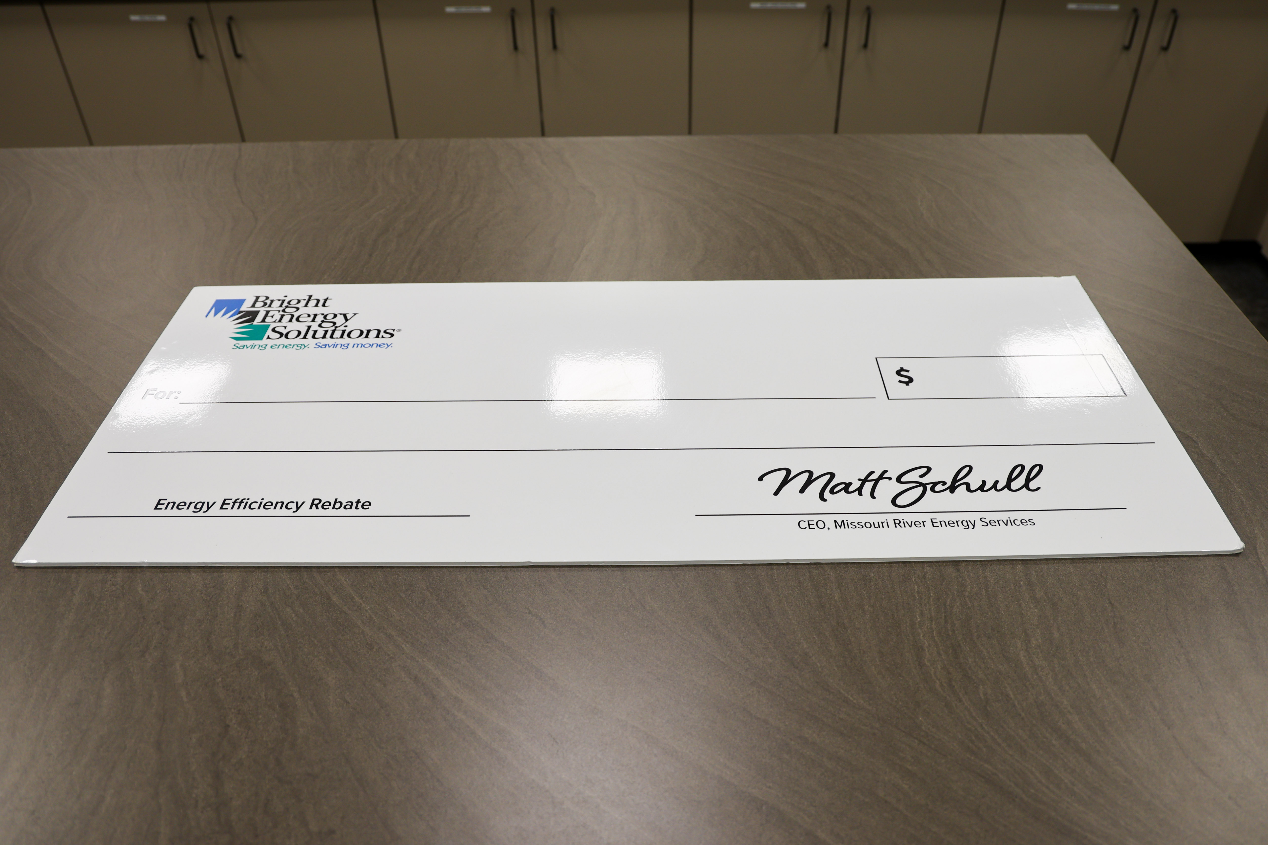 BES large rebate check - 3.3' x 1.5'